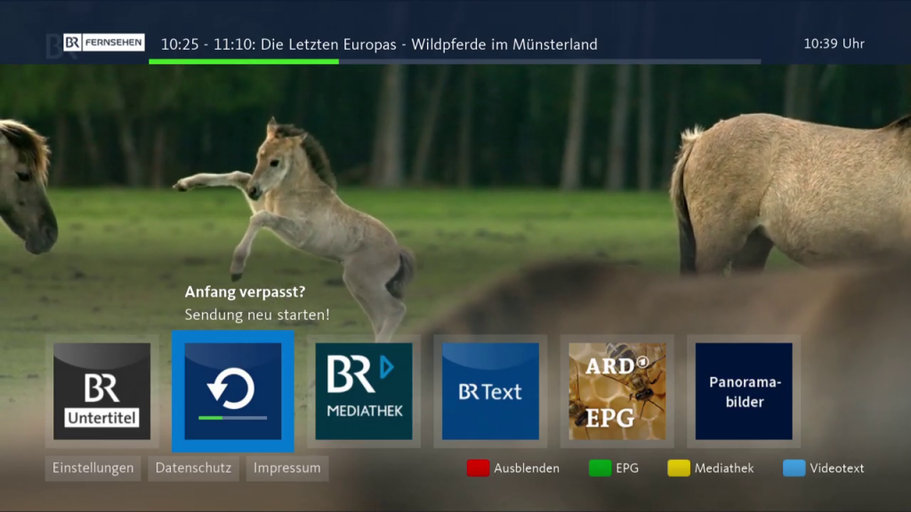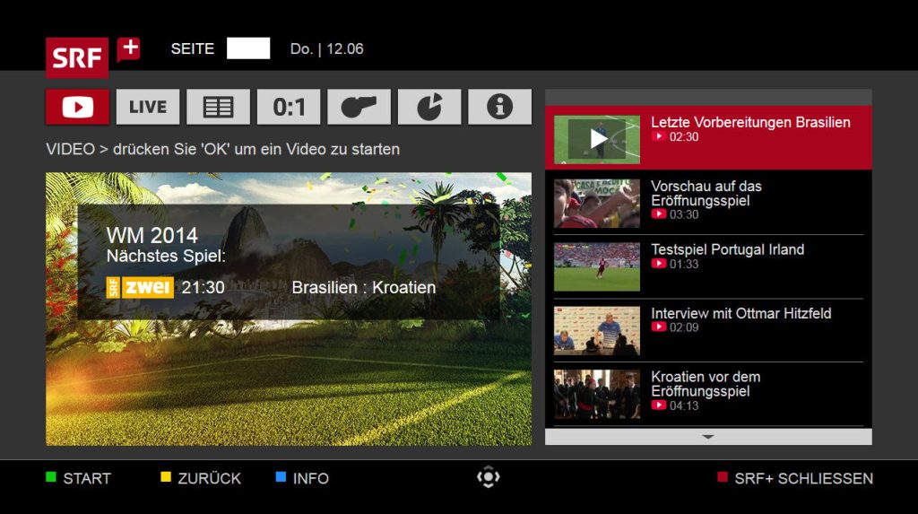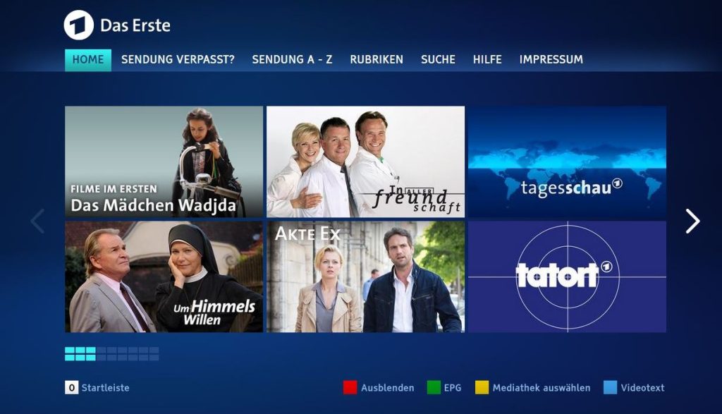 When a viewer’s TV supports HbbTV and the broadcaster makes available a “broadcast-related application”, the viewer will see a “call-to-action” in a corner of the screen. This might, for instance, be a logo showing a red button, informing the viewer that an app is available for launch at the press of that button. When pressed, the app – that was already resident in the TV – will be displayed.