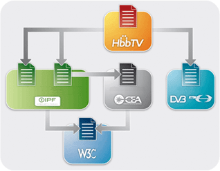 The HbbTV specification was developed by industry leaders to effectively manage the rapidly increasing amount of available content targeted at today’s end consumer. It is based on elements of existing standards and web technologies including OIPF (Open IPTV Forum), CEA-2014 (CE-HTML), W3C (HTML etc.) and DVB Application Signalling Specification (ETSI TS 102 809) and DASH. The diagram shows the relationship between HbbTV and other existing standards.